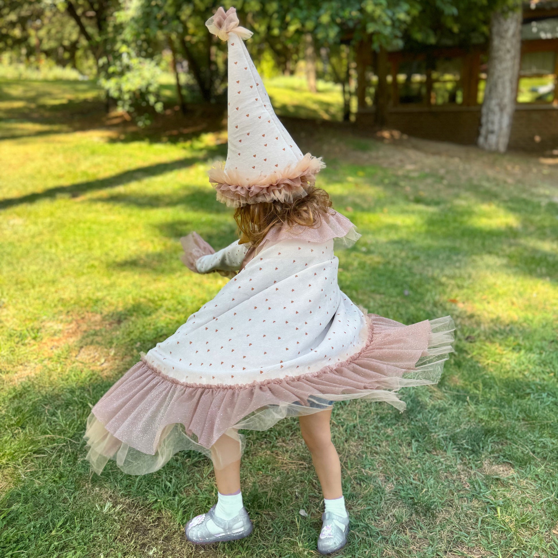 Setin tamamlayıcı parçası olan büyücü şapkası ise tütü dokusuyla başında hafif bir peri tozu gibi durur… Doğum günleri, fotoğraf çekimleri veya hayal gücüyle dolu oyun saatleri için kusursuz bir eşlikçi.