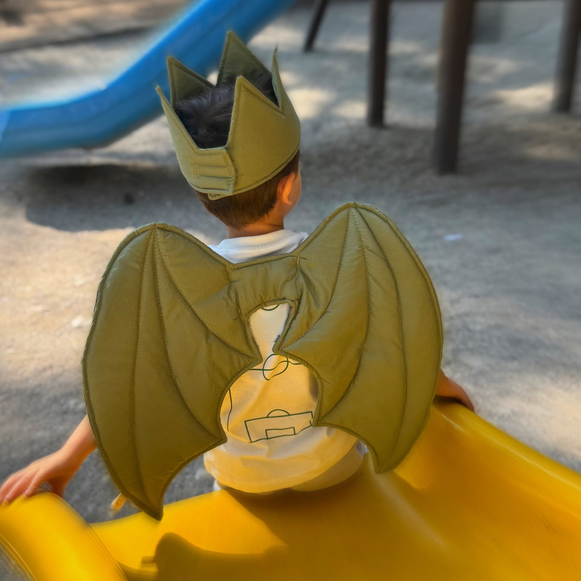 Mossie Child’ın el emeği haki yarasa kanadı, yumuşak dokulu ve hafif yapısıyla tüm yaş gruplarındaki erkek çocuklarının rahatça kullanabileceği özel bir oyun aksesuarıdır; elde özenle dikilen kanat formu özgür hareket etmeye imkan tanırken, doğum günü partilerinden günlük oyun saatlerine kadar her ana macera hissi katar ve miniklerin hayal gücünü cesur bir dünyaya açar.