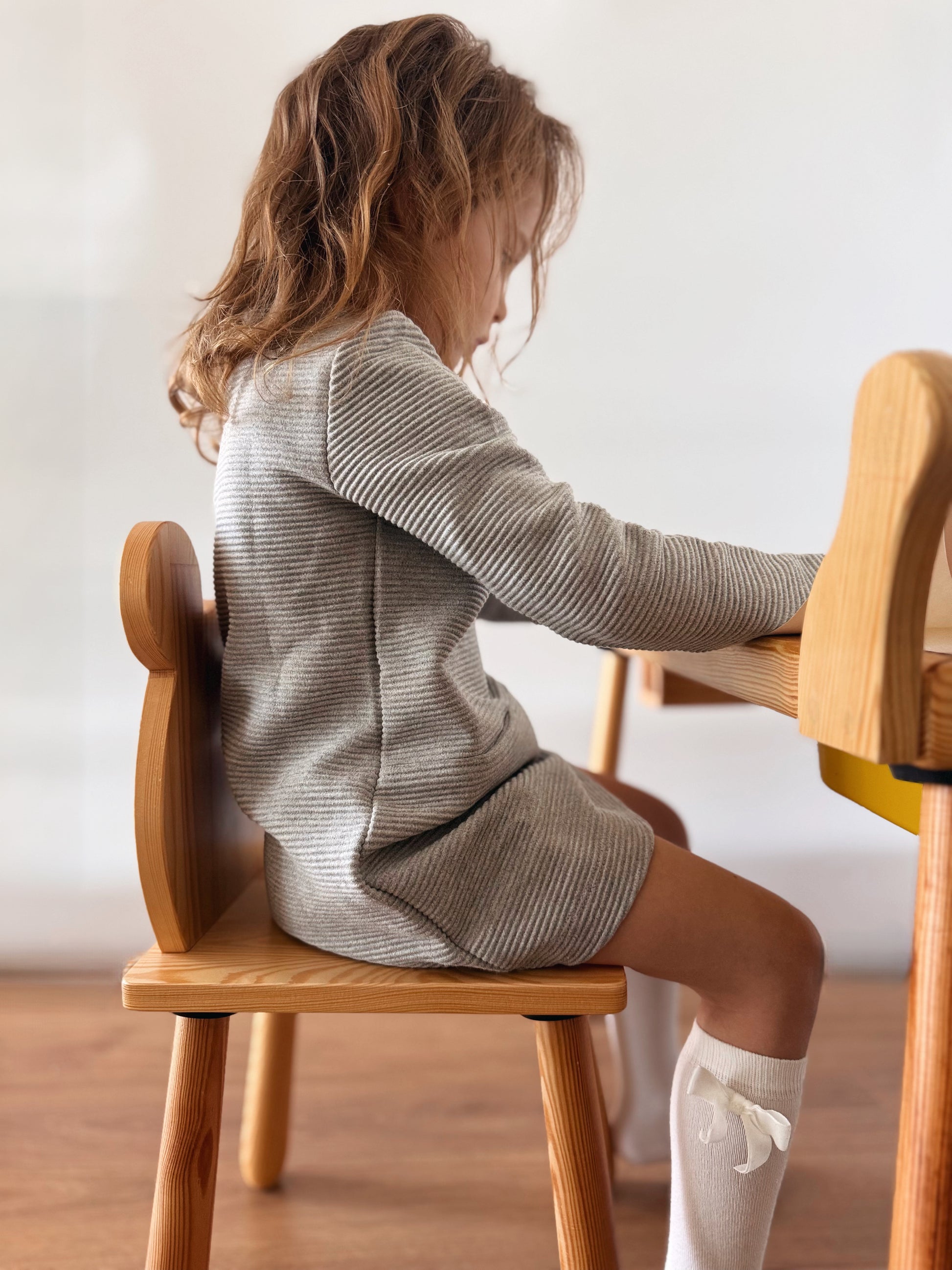 Ottoman Elbise, çocukların günlük hayatında rahatça hareket edebilmesi için tasarlandı. Minimalist çizgisi ve doğal kumaşıyla hem şık hem de zamansız bir parça.
