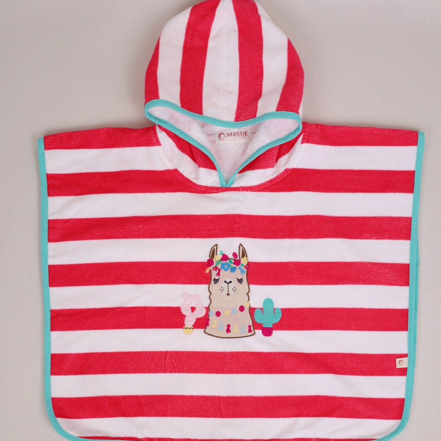Sunny Splash Llama Poncho Coral, Canlı mercan –beyaz çizgileri ve yumuşacık havlu dokusuyla bu kapüşonlu panço, çocukların hem yaz boyunca hem de banyo sonrası en büyük konforu olacak. Su emici yapısı sayesinde plajda ve havuzda hızlı kurulanma sağlarken, evde banyodan sonra da sıcaklık ve rahatlık sunar.